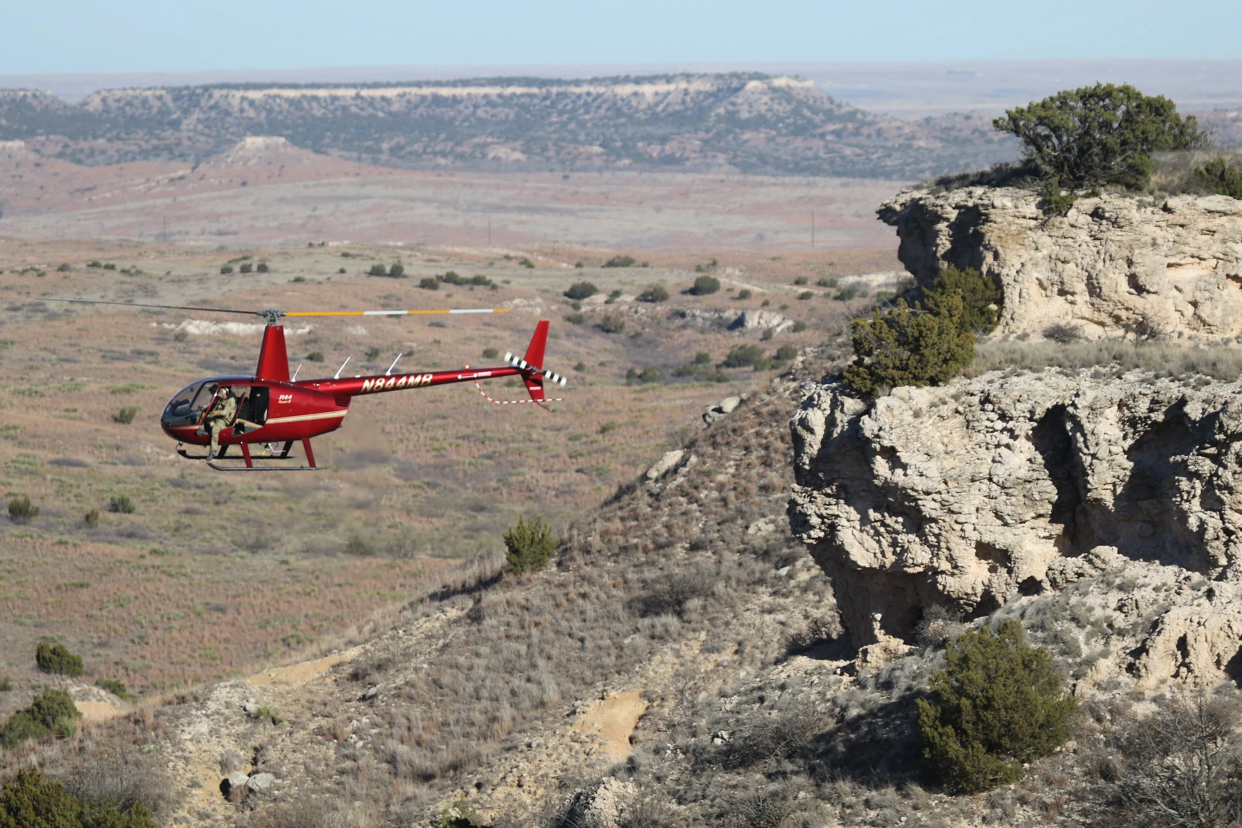 An aerial platform training experience, the Rotor Recoil course (RR) provides an opportunity for sportsmen to learn the dynamics of shooting from a helicopter owned and operated by Abraham Equine. The course includes 90 custom made targets, scattered over 11,000 acres on privately owned Mendota Ranch in Canadian, Texas. With changing terrain and variable conditions, our 90 target course provides consistent target opportunities and a fast paced experience. Designed to be challenging for marksman of any skill level, the course creates exciting and unique training to improve accuracy across all platforms, and serves as excellent training for predator control and feral hog population management.
